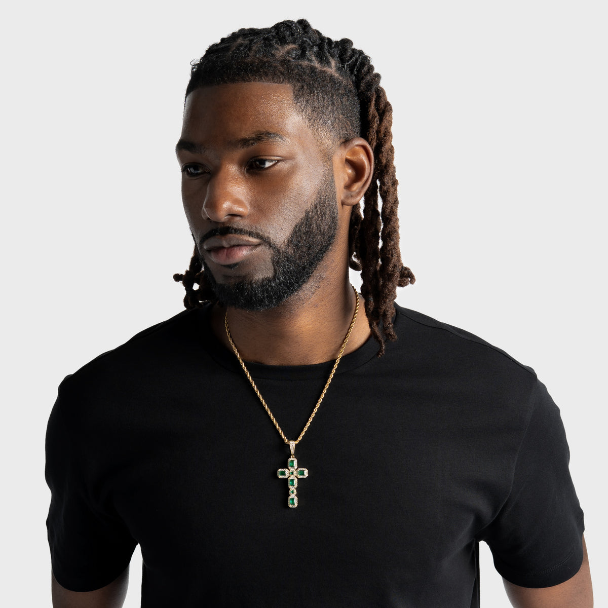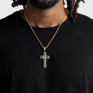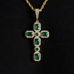 Emerald Cluster Cross Pendant Gold