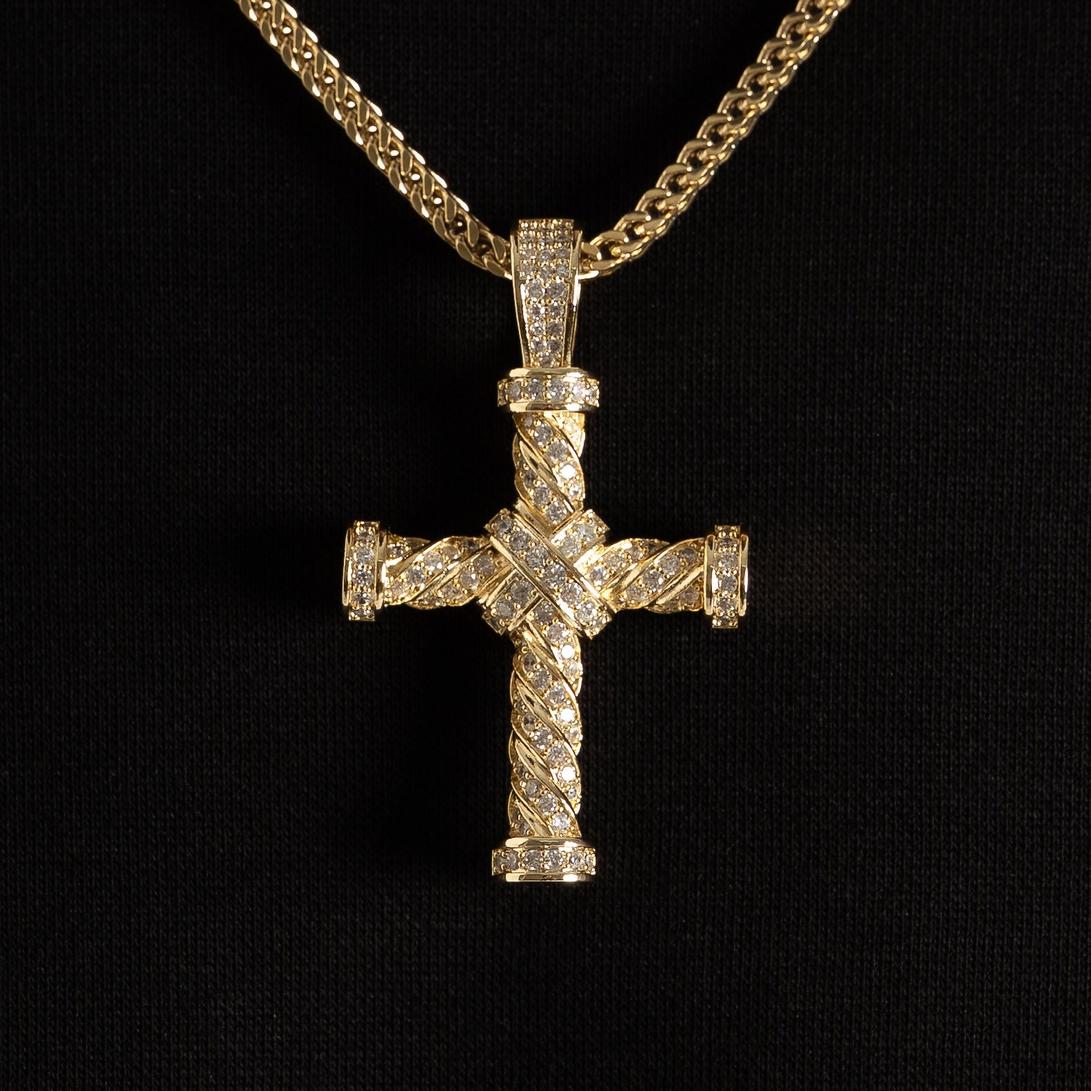 Iced Twist Cross Pendant Gold